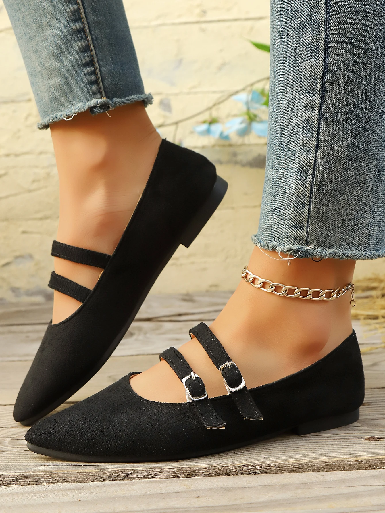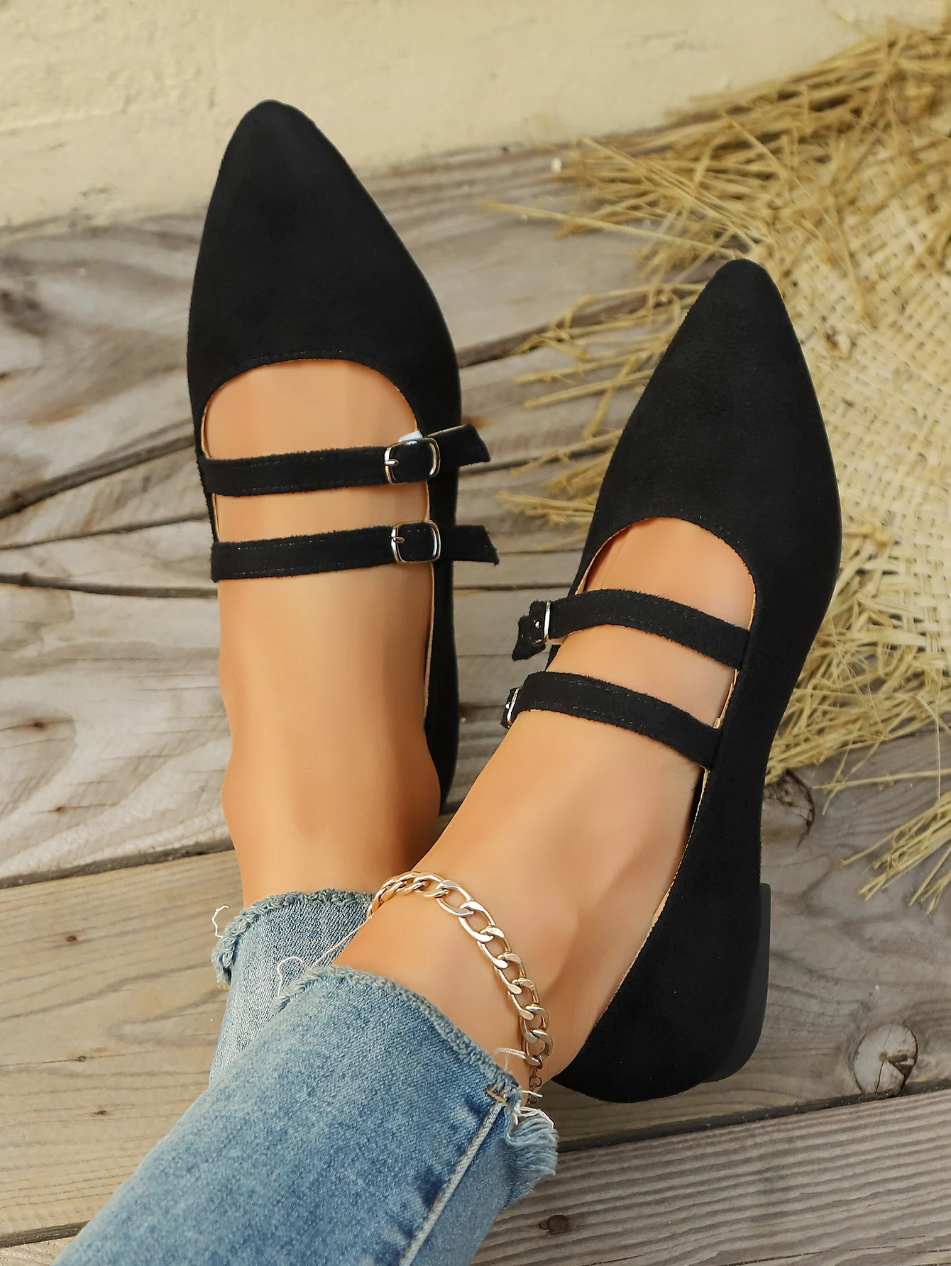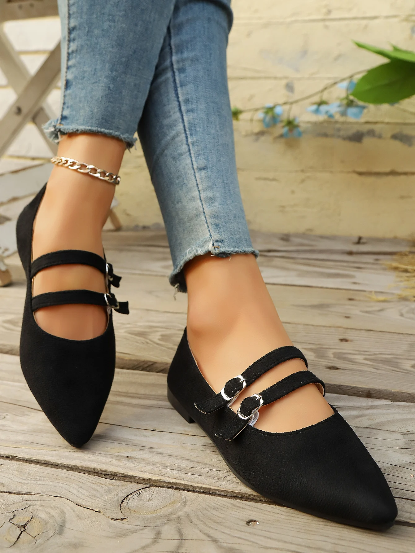 Women's Niche Pointed-Toe Leopard-Print Shoes: New French-Style Slip-On Loafers with Ankle Strap, Ideal for Daily Commute