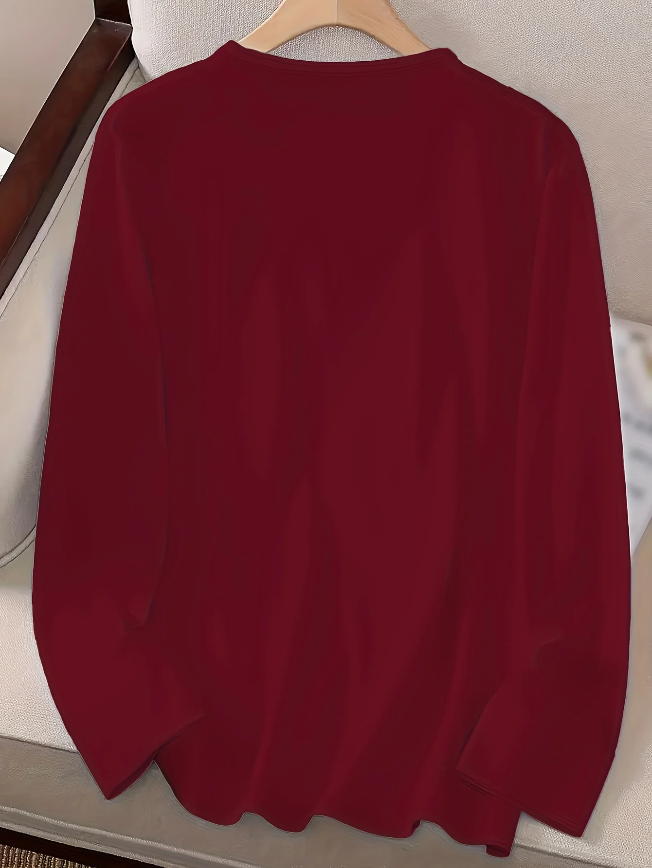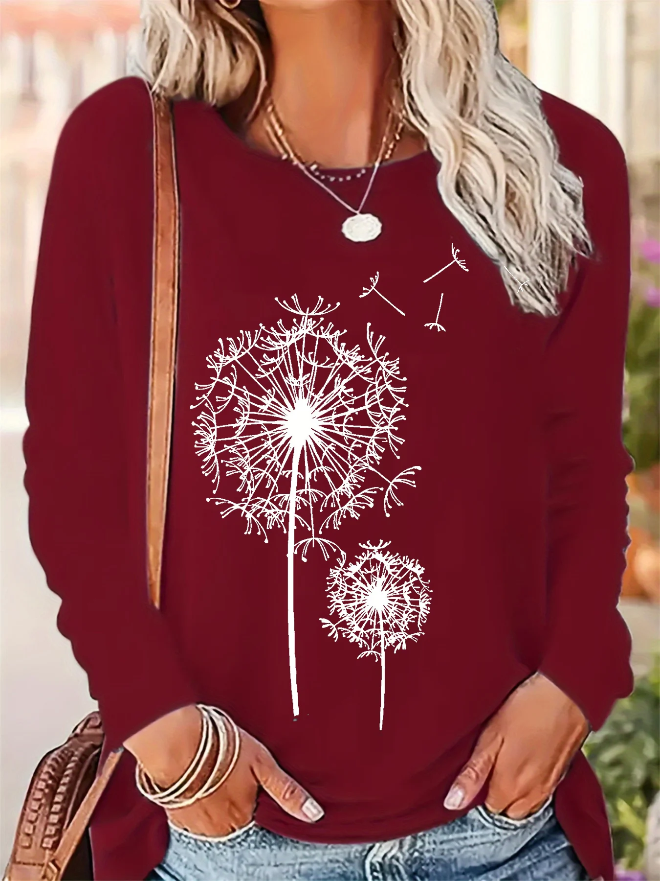 Women's Spring and Autumn 100% pure cotton fashionable casual loose dandelion pattern printed round neck long sleeved T-shirt