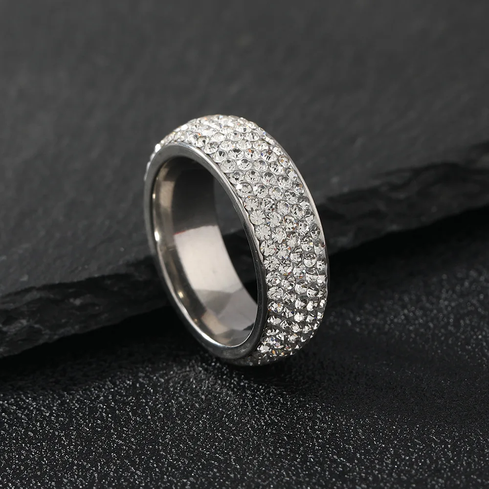 Women's Unique High-end Five-row Clay Diamond-encrusted Titanium Steel Ring | Stainless Steel Jewelry