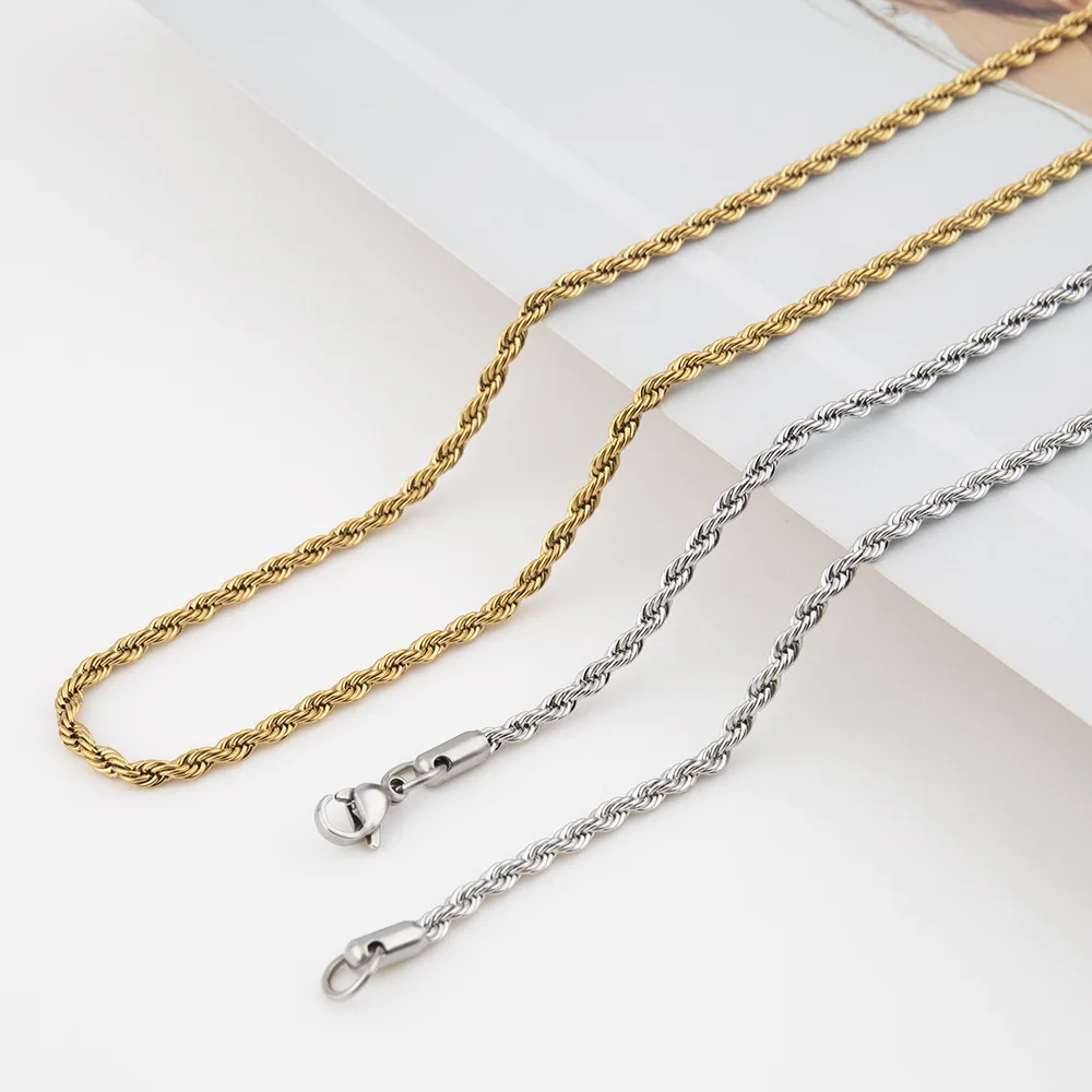 Featuring a twisted rope chain design, this necklace offers a classic yet trendy look suitable for both men and women.